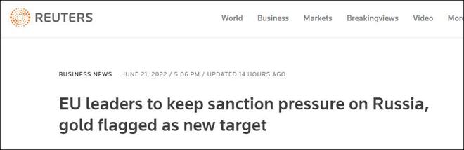 不过路透社21日披露,欧盟领导人正在酝酿对俄进一步制裁,黄金可能成为新目标。