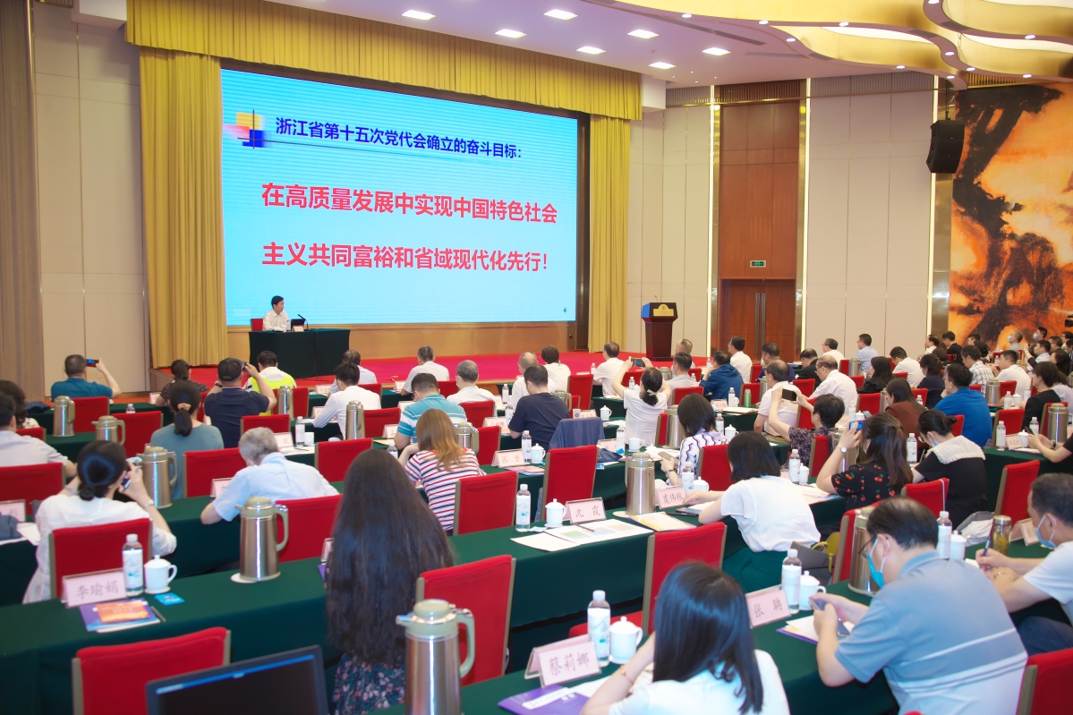 省社会组织总会会长梁星心为活动致辞,省委高质量发展建设共同富裕示范区咨询委委员刘亭作“共同富裕与浙江实践”专题讲座,围绕浙江高质量发展建设共同富裕示范区,梳理了党对共同富裕理念的历史沿革,结合社会组织实际,解读了浙江经济发展的四张“金名片”。江宇同志传达贯彻省第十五次党代会精神,并作“守好红色根脉,奋力争先创优,在共同富裕进程中持续擦亮社会组织的清廉底色”专题讲话。