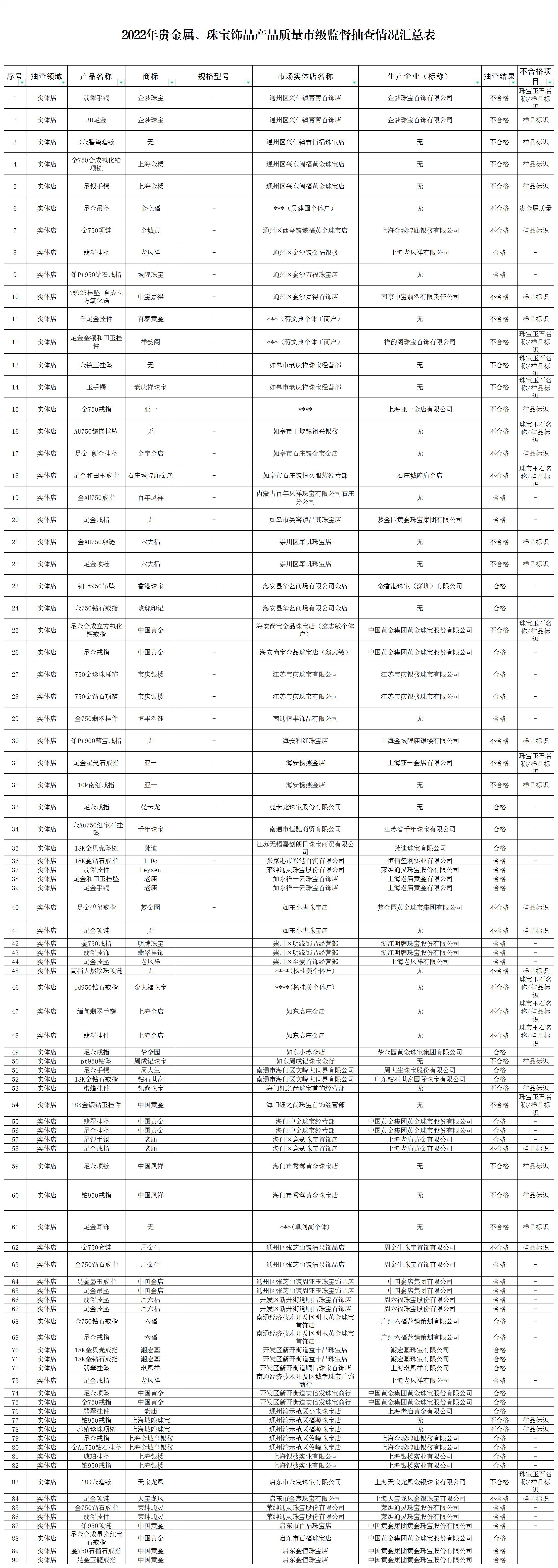 本次南通市市场监督管理局抽查贵金属、珠宝饰品90批次,发现40批次产品不合格。
